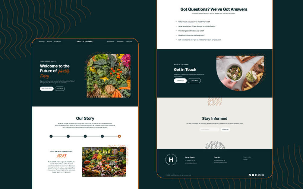 Embrace HealthHarvest, and let your sustainable agriculture business flourish in the digital ecosystem, reaching out to conscious consumers with a verdant and vibrant online home.