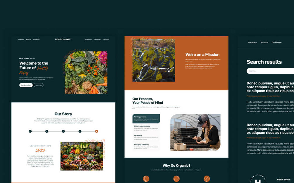 Root your organic agriculture business in digital excellence with HealthHarvest. Fresh designs and rich features cultivate a compelling, responsive online presence.