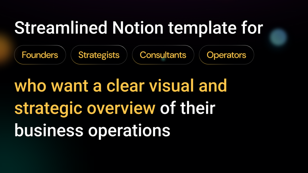 The Value Chain Architect (Light) is a streamlined Notion template for founders, strategists, consultants, and operators who want a clear visual and strategic overview of their business operations — from idea to delivery.
