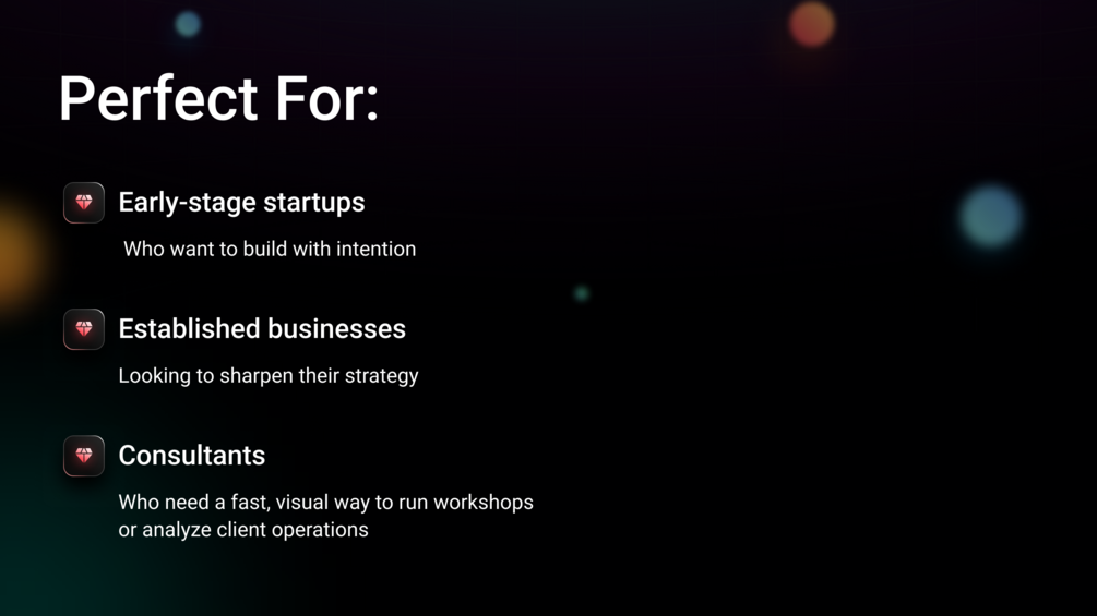 - Consultants who need a fast, visual way to run workshops or analyze client operations